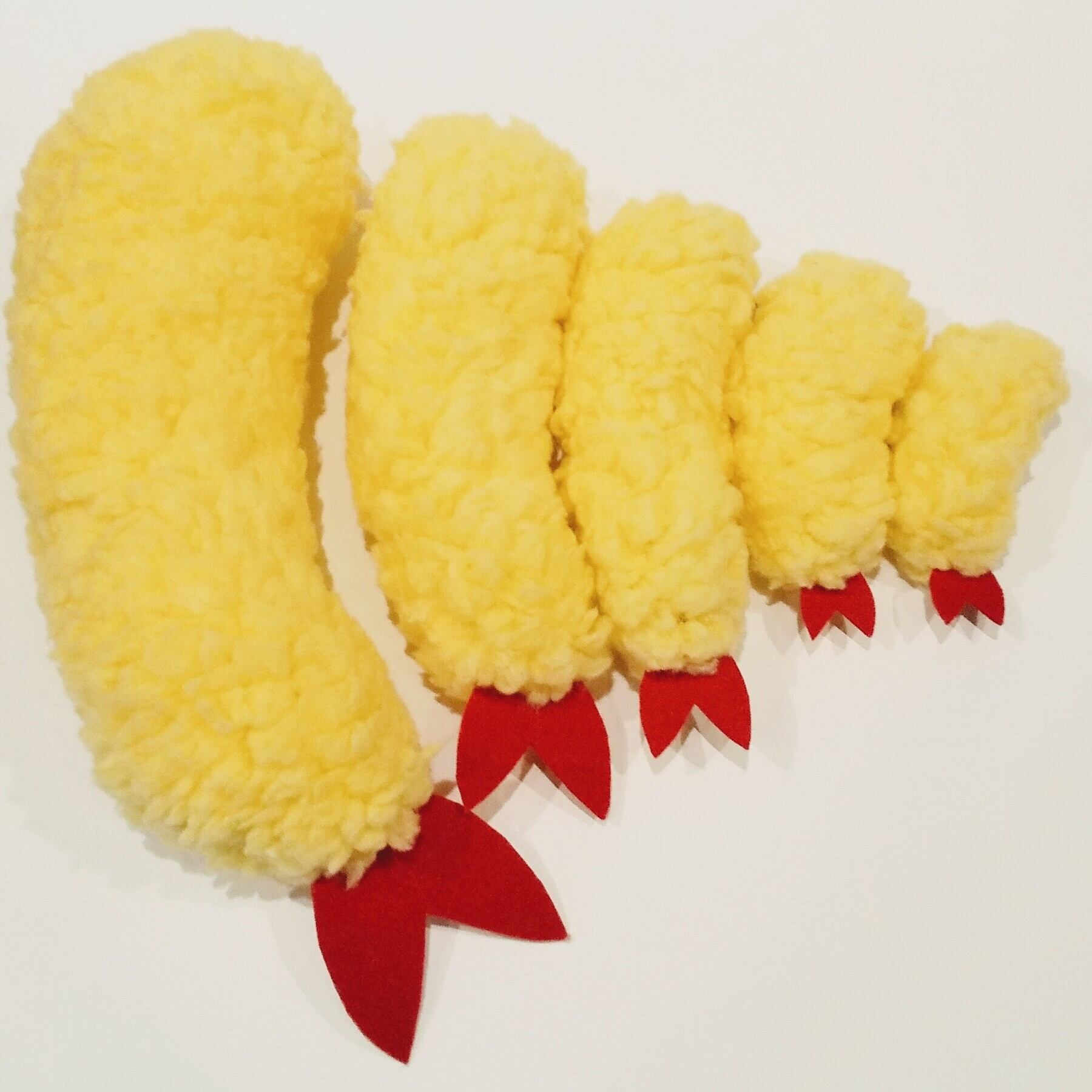 ファー生地を使用して製作したえび天キーホルダー(ボールチェーン使用)
